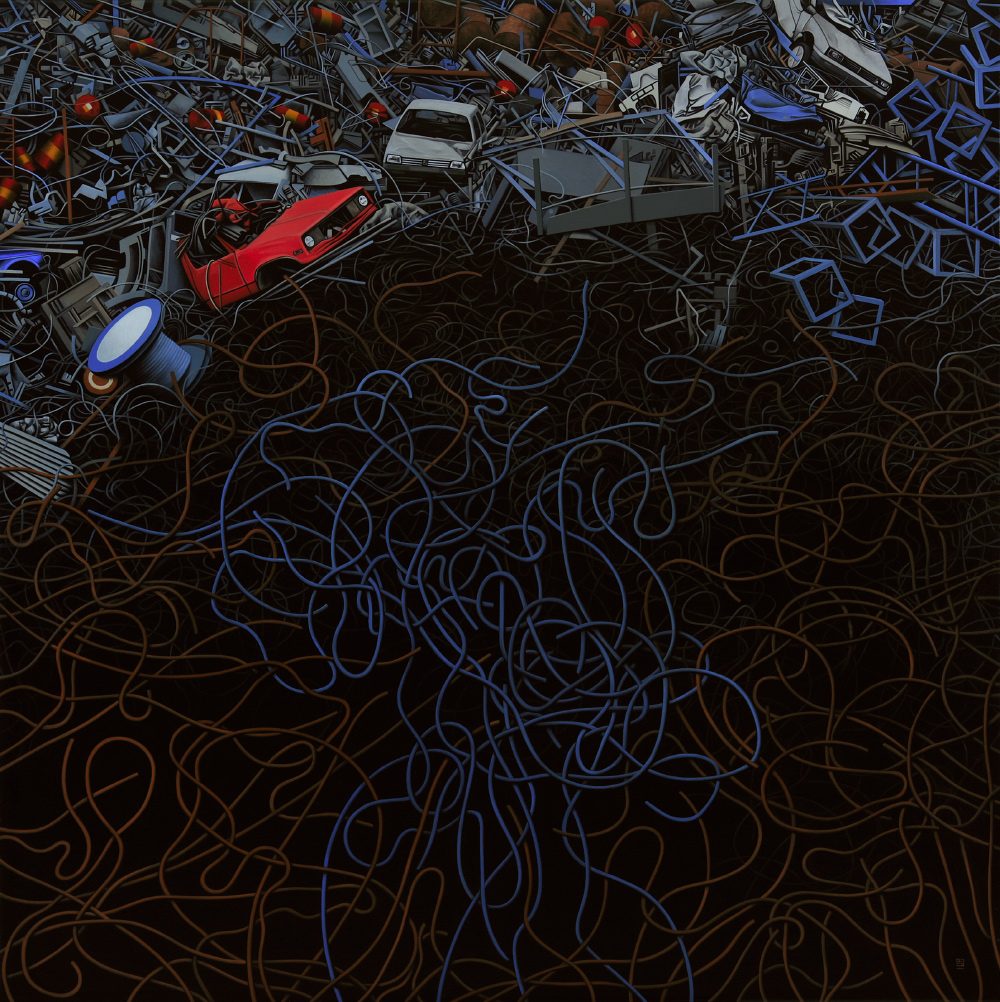 Teunissen lives and works in Sweden but has dutch roots. The scenes he depicts tend to have an architectonic atmosphere. “ The images I use are taken from my daily life”, Teunissen says about his work. “Near construction sites and overgrown junkyards, you will discover that the difference between thriving industry and its remnants are in fact not so great. Everything that was once put there has not disappeared- it has just been abandoned, became outmoded and was disposed of. My intention is to show the flip side of the cultural landscape and to find a universal value in this thus to make universal images. I do not want make statements on the temporality of life. Nor do I want to criticize the consumer society. I show what remains of things. The remnants of our culture”.